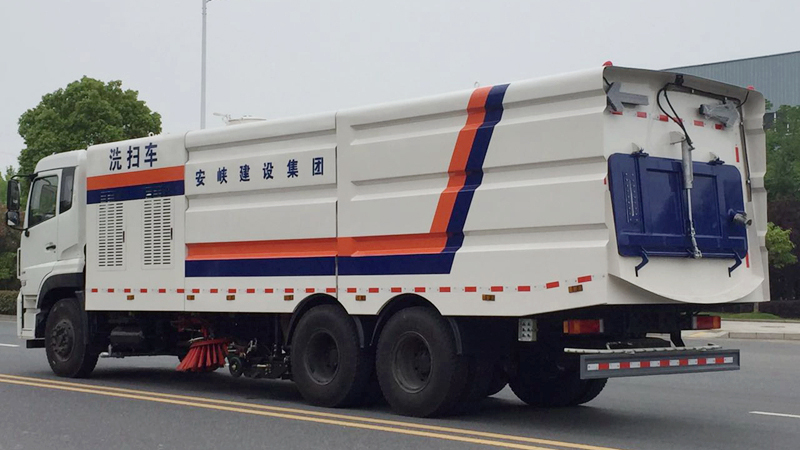 6)具備倒車保護(hù)裝置,在作業(yè)過程中如遇緊急倒車,智能化的控制系統(tǒng)會自動停止作業(yè)并收回掃盤、吸盤和側(cè)噴桿;具有防止舉升垃圾箱翻車保護(hù);具有檢修安全保護(hù)。
